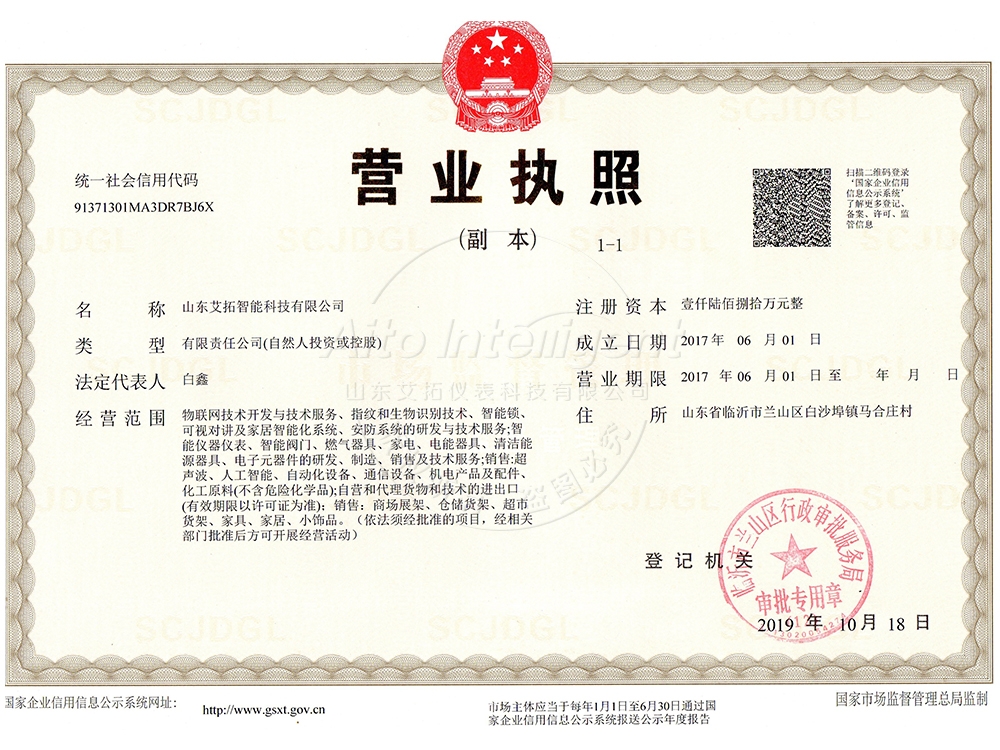 山東艾拓智能科技有限公司是以設計、研發(fā)、生產、銷售、服務為一體的綜合性新型企業(yè),我們一直致力于生產智能水表、智能電表、智能燃氣表、超聲波熱量表等四大系列50余款產品,公司注冊資金1680萬元,占地6000余平。